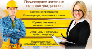 Дилерский заказ на изготовление конструкций для натяжного потолка будет гарантированно выполнен в короткие сроки. Заинтересовало предложение? Появились какие-либо вопросы?